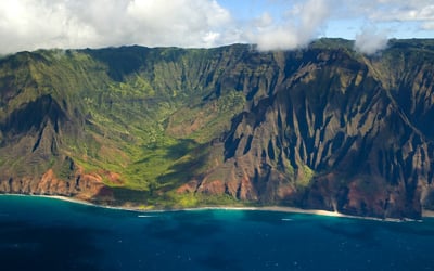 Experience Kauai from above on a private 65-minute air tour. Fly past the Na Pali Coast, Waimea Canyon, Hanalei Valley, waterfalls, and rugged coastline.
