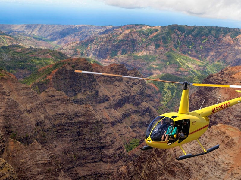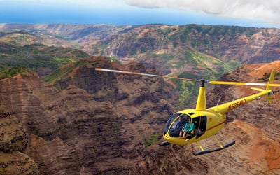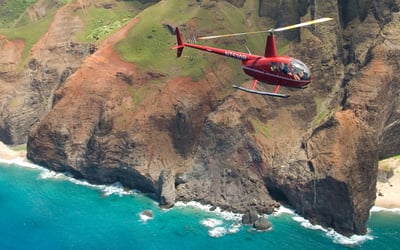 Soar over Kauai on a private 50–60 minute flight showcasing the island’s dramatic coastlines and canyons. See the Na Pali Coast, Waimea Canyon, Manawaiopuna Falls, and Mt. Waiale’ale Crater.