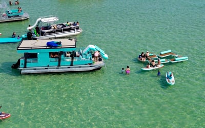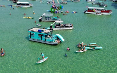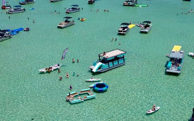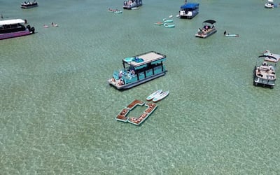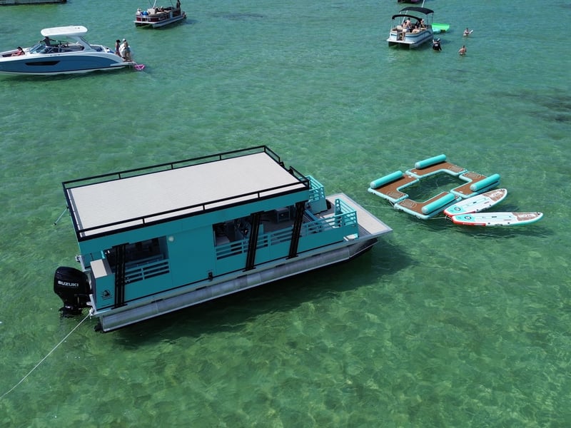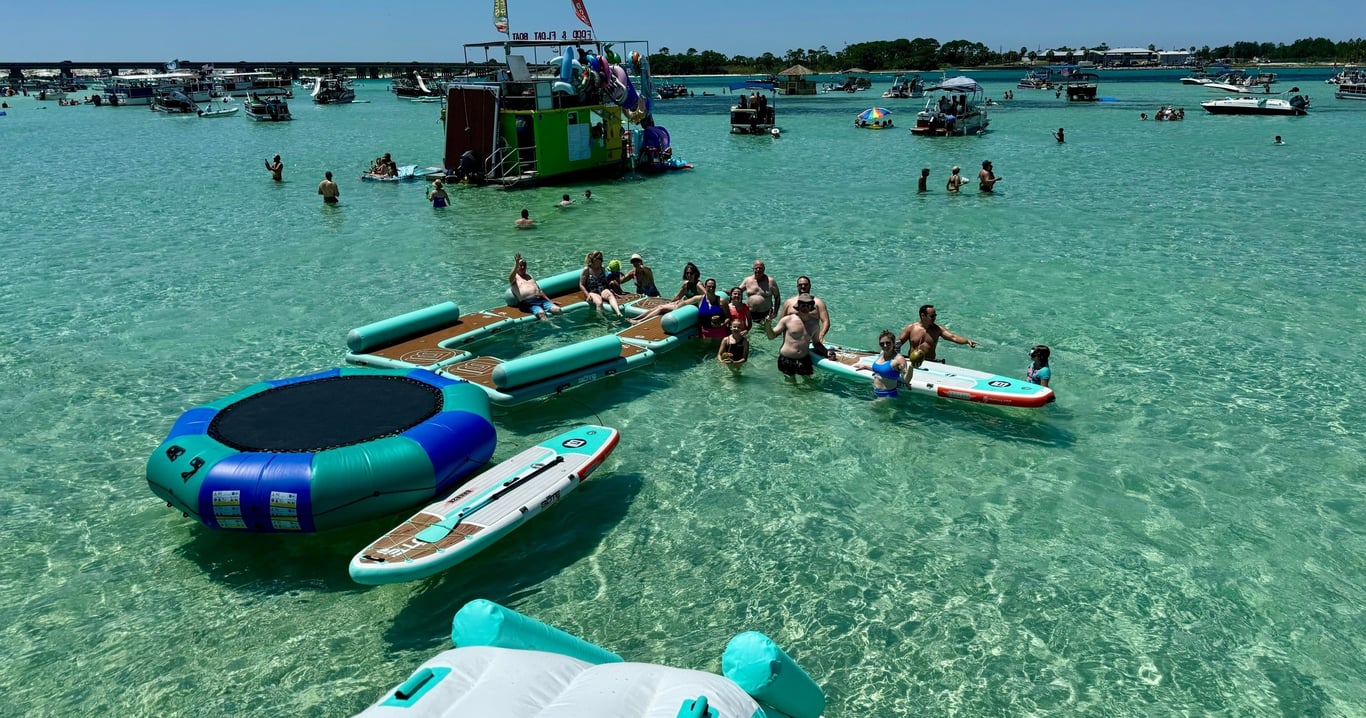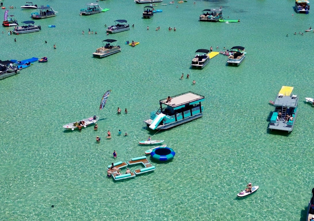 Gather your group for a private luxury pontoon charter to Crab Island. Cruise with a licensed captain and deckhand and enjoy onboard amenities for a laid-back day on the water.