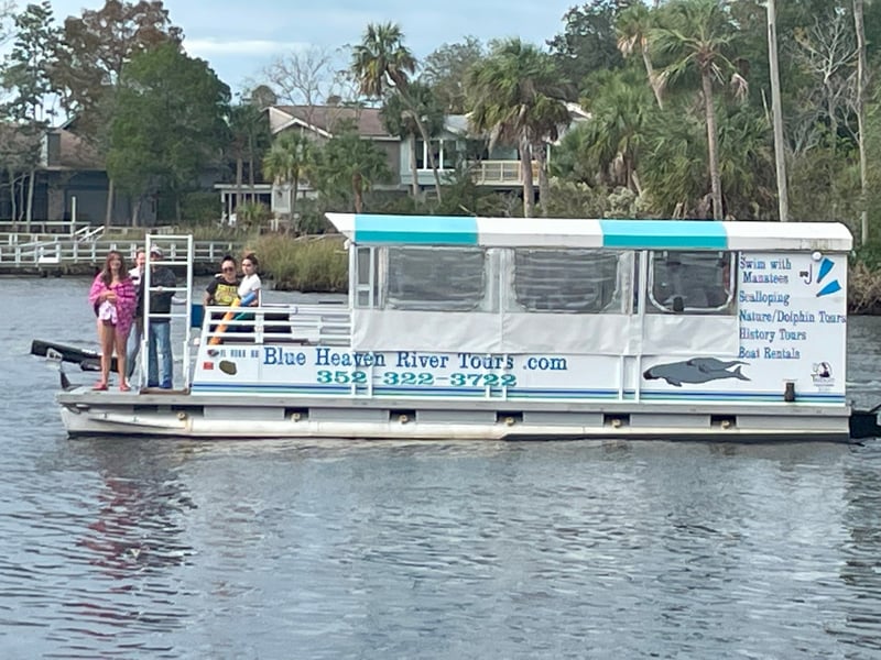 Swim with gentle manatees on a comfortable, heated pontoon boat with a private restroom. Enjoy a private three-hour adventure on the Homosassa River with gear provided and a USCG master captain to guide you.