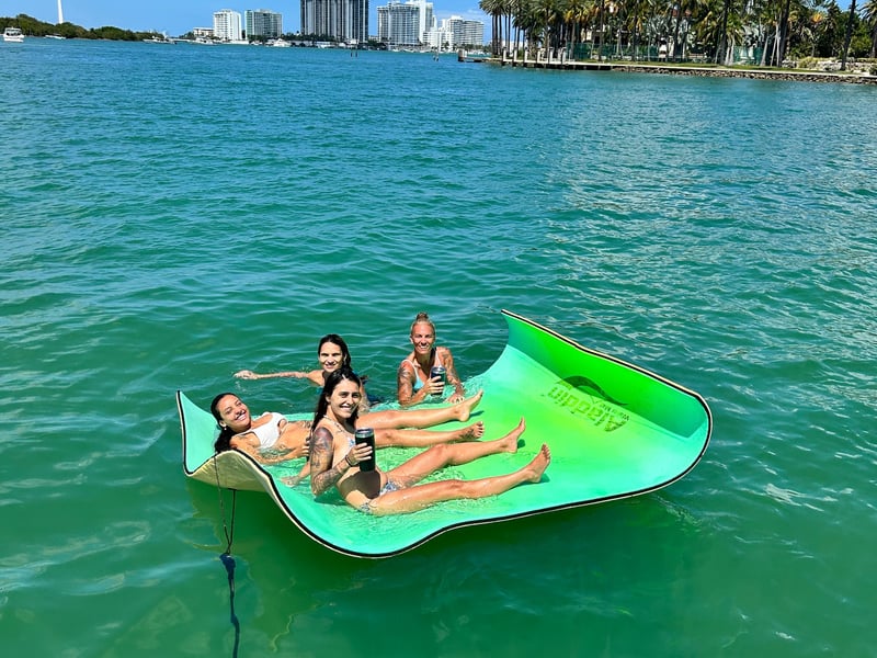 Cruise Biscayne Bay with a private captain, play your music, and relax on a floating mat