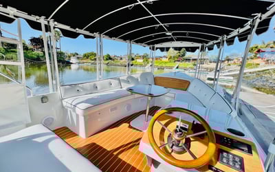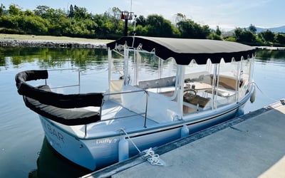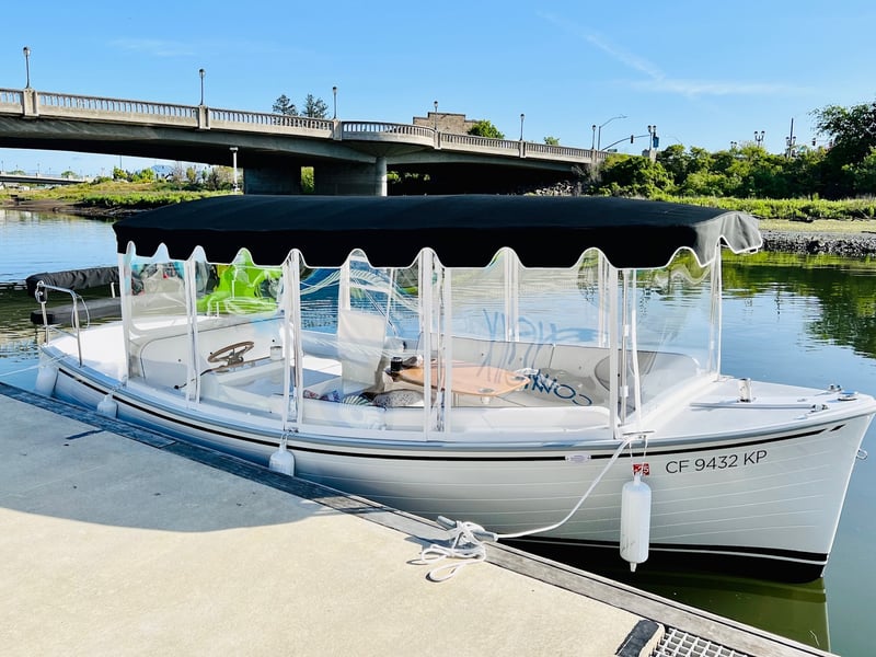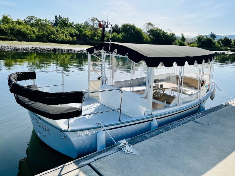 Cruise the Napa River aboard a 22’ electric Duffy SunCruiser featuring indoor lounge seating and an open-air deck. Enjoy scenic views while sipping your own beverages during this private one-hour outing.