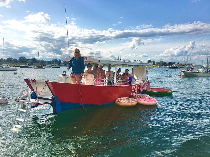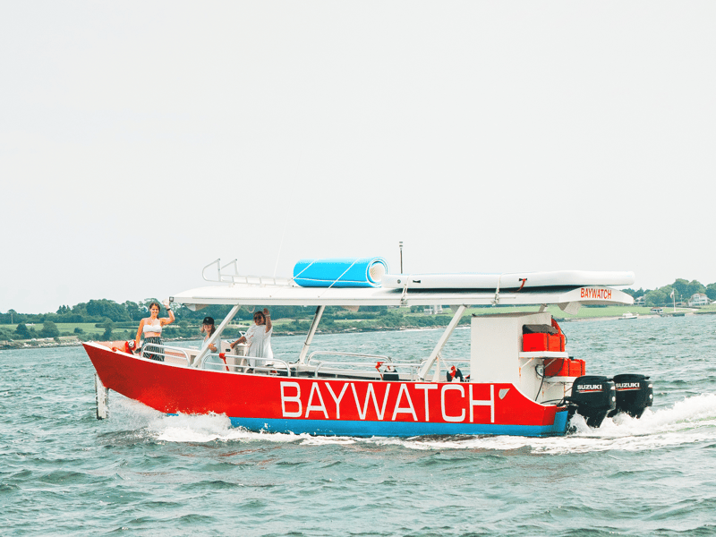 The Baywatch boat crew in Newport has clearly mastered the art of creating unforgettable experiences on the water. Cat stands out in nearly every review as an exceptional host who brings incredible energy, takes amazing photos and videos for groups, and makes everyone feel like she's just another friend along for the ride. The team is consistently praised for being accommodating with weather changes and flexible scheduling, showing genuine care about delivering the best possible experience. The boat itself comes equipped with everything you need: floats and noodles for swimming, bluetooth speakers, coolers with ice, and even a clean bathroom with shaded areas. This is clearly the go-to choice for bachelorette parties in Newport, though families celebrating milestone birthdays have had equally wonderful times. Groups appreciate the BYOB setup that keeps costs reasonable, the spacious and clean vessel, and crew members like Dan, Chelsea, Liam, and Greg who all contribute to the fun, safe atmosphere. The tours cruise past stunning mansions only visible from the water and include swimming stops where you can float and relax. Catherine handles booking communications with impressive responsiveness and helpfulness throughout the entire process.