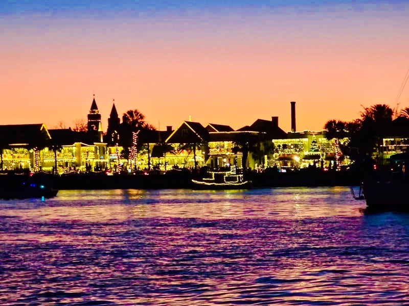 Enjoy a 90-minute private boat ride to St. Augustine's holiday lights with BYOB and your music for up to 11