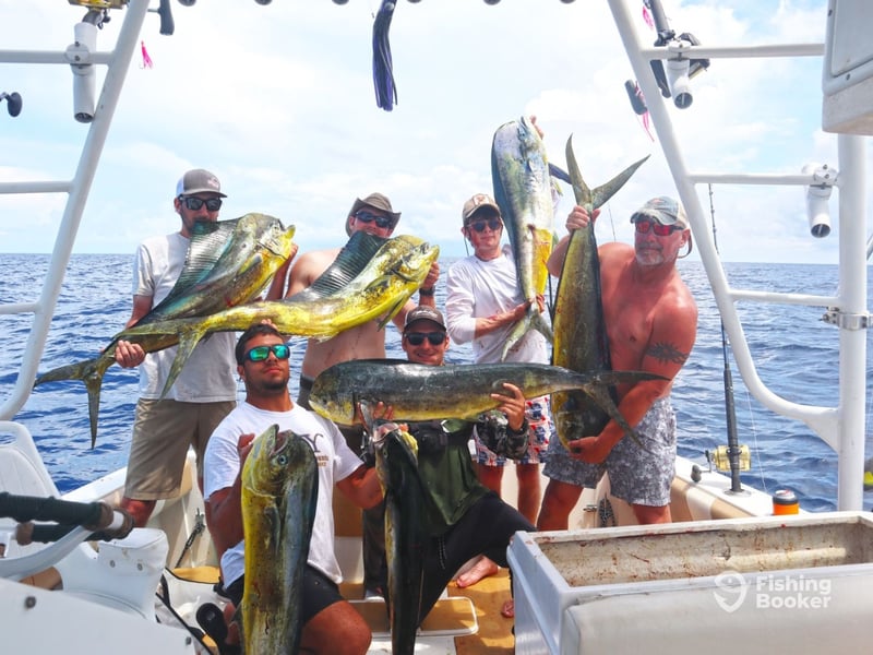 Trips accommodate up to 6 guests. Options include 4, 6, 8, 10, 12, or 13 hours. Bring sun protection, hat, sunglasses, water, snacks, and seasickness medication if needed.