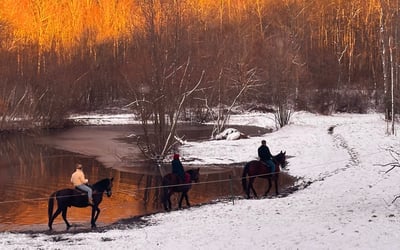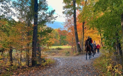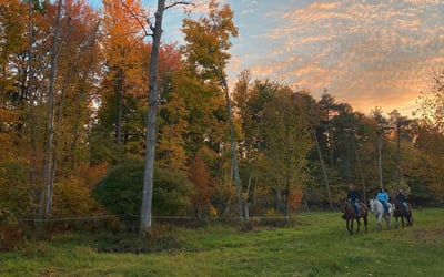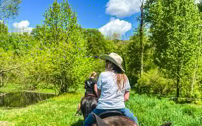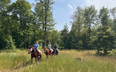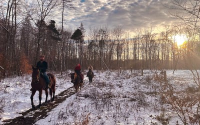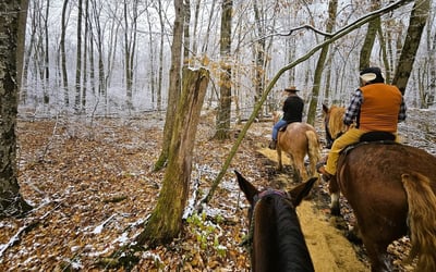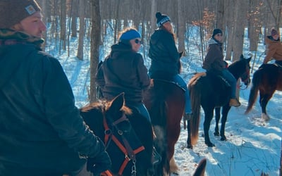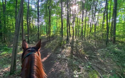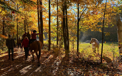 Savor a private, walk-only horseback ride along peaceful wooded trails. Ride with just your group and a guide for a relaxed, judgment-free experience.