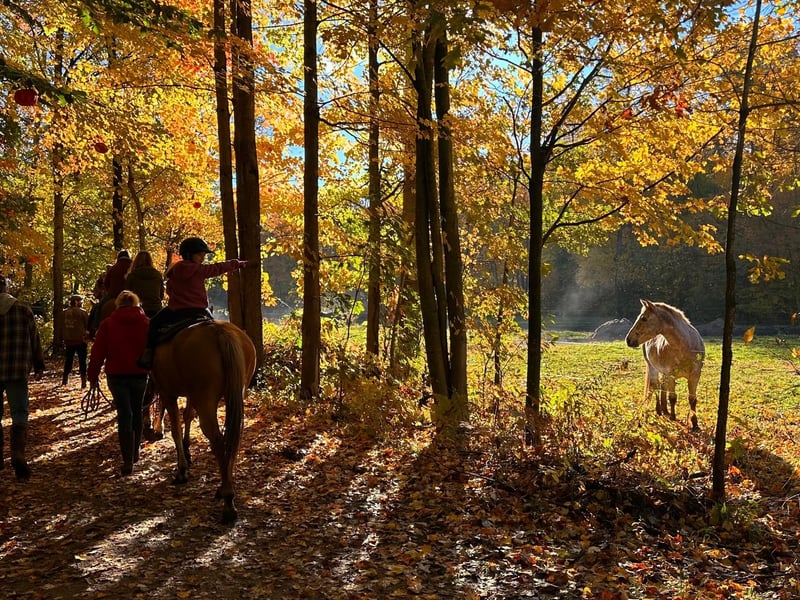 This family-owned ranch has earned genuine enthusiasm from visitors, with reviewers consistently praising the obvious care given to their rescued horses. The animals are described as gentle, well-maintained, and clearly loved, which equine enthusiasts particularly notice and appreciate. First-time riders repeatedly mention how patient and thorough the staff is with explanations, answering endless questions without ever making anyone feel rushed or inexperienced. The guides check in frequently during rides, creating a relaxed atmosphere that puts nervous riders at ease. Beyond the trail rides themselves, people love the personal touches and special events. Birthday celebrations get sweet additions like tutus and sashes, while themed rides (glow rides, Halloween rides) create memorable experiences. The scenic woodland trails offer peaceful settings, and the booking process is straightforward with clear communication about what to expect. Groups ranging from senior ladies to first-time riders to experienced horse owners have all left impressed, many planning return visits and spreading the word about their experiences.