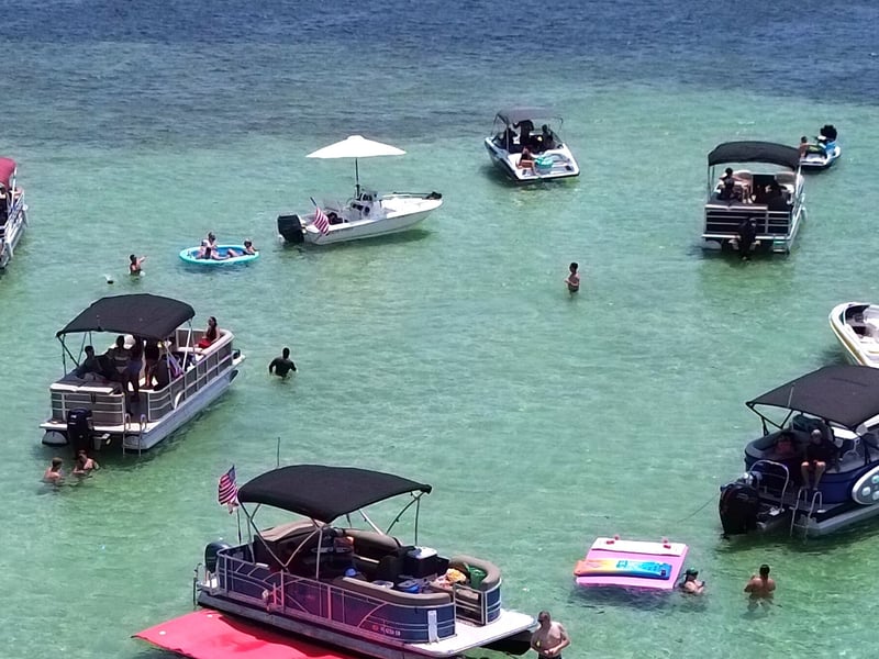 Set out on a private pontoon charter to explore Destin, Okaloosa Island, and Crab Island at your own pace. Enjoy comfy lounge floats, a floating lily pad, snorkel masks, and a cooler while you relax in the shallow waters.