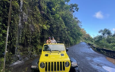 Explore the Road to Hana in a private open-air Jeep with a guide, scenic stops, and snacks included