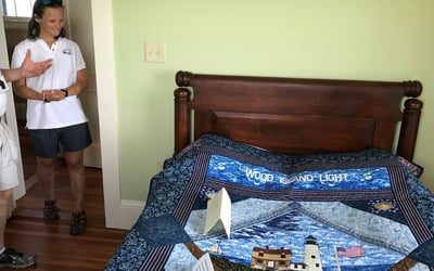 Season runs 7/1 to 9/14/24. Guests must be able to get in and out of a dingy and walk the ½ mile boardwalk; no bare feet, flip-flops, or clogs on Wood Island. Children must be at least 10 to climb the lighthouse tower; parties over 6 require two boats.