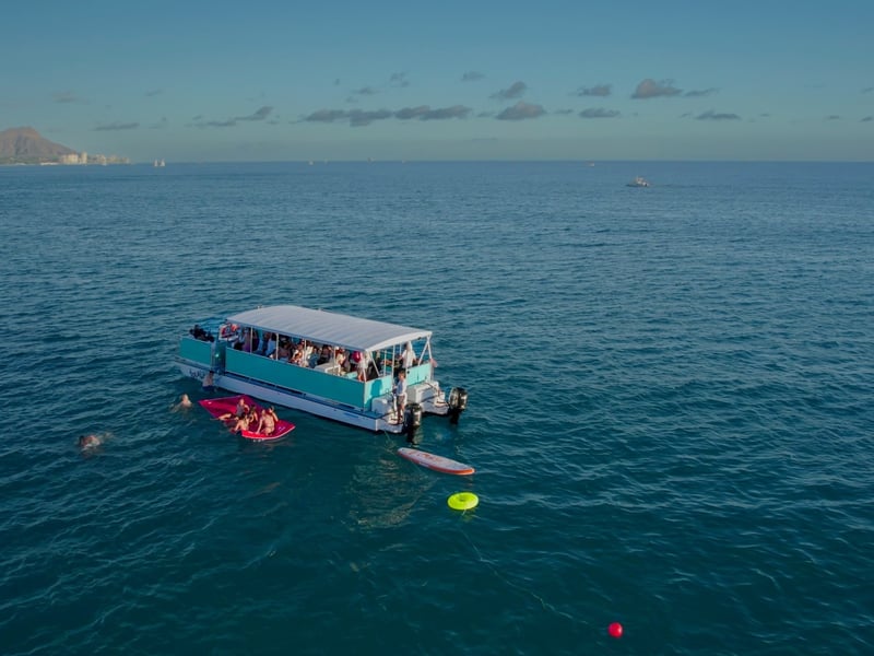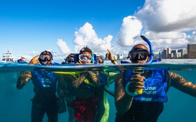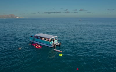 Charter a private snorkel tour in Honolulu and explore Oahu's sea life at Turtle Canyons. Swim among tropical fish and watch for green sea turtles with an experienced crew guiding you.