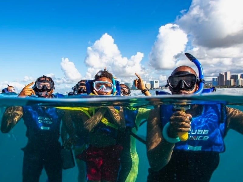 We LOVED our time with Honolulu Snorkel Company. Captain Carlos, Jake, Ace, & Avi were fun, knowledgeable, safe, and extremely patient- in particular. I was impressed watching them manage some more water-shy individuals and children. They kept calm and were encouraging with them. Jake even taught my husband how to dive down to the coral. We swam through endless fish and saw at least 5 sea turtles close-up. They were clear about rules and safety in regards to participants and to the wildlife. On the way back to dock, we spotted a pod of dolphins and Carlos stopped the boat, giving us extra time to watch them. It was magical and I was so thankful for that!