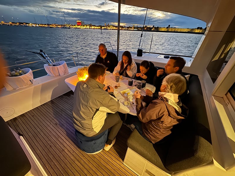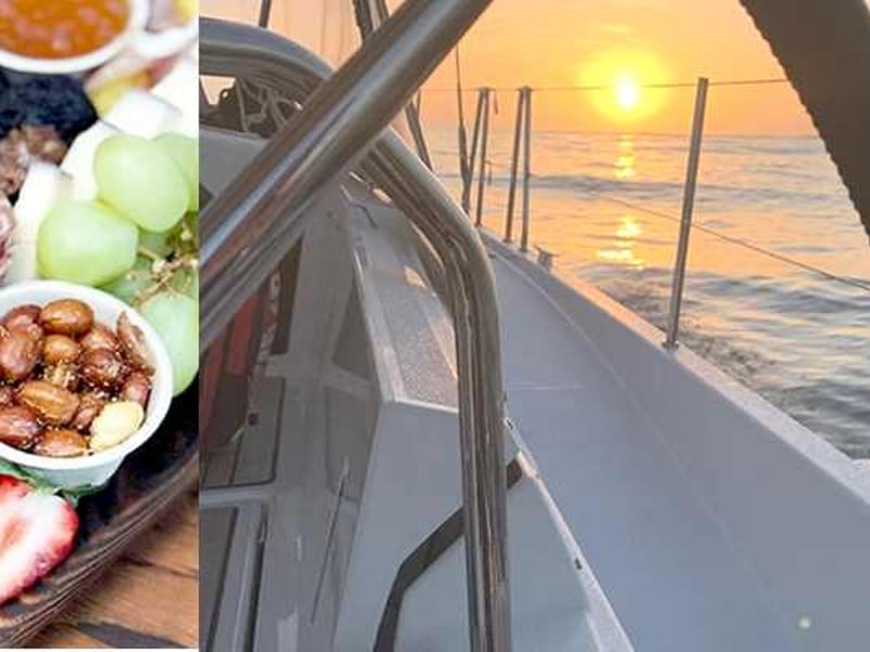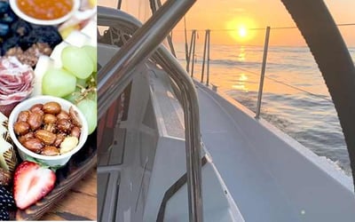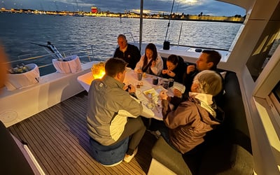 Savor a chef-prepared four-course meal with drinks aboard a private luxury yacht at sunset