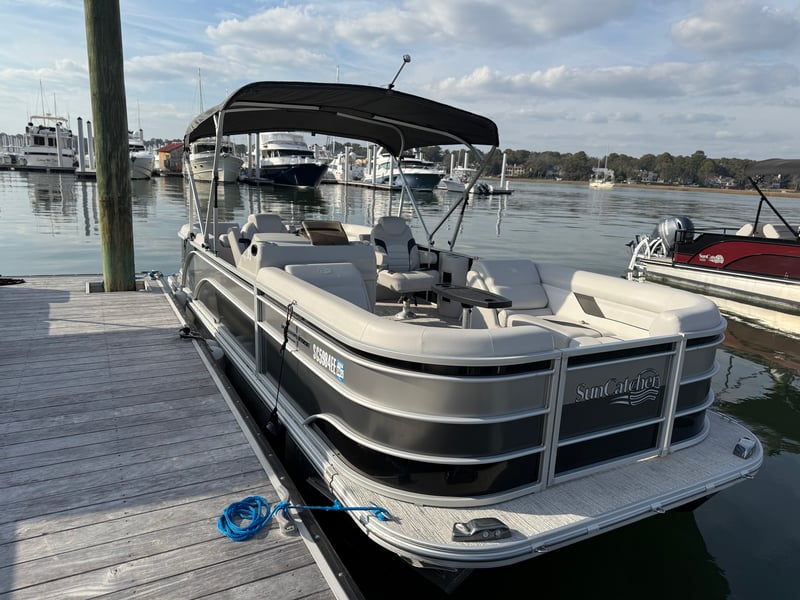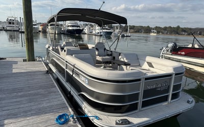 A: A comfortable 22 foot pontoon boat with a maximum of 6 people.