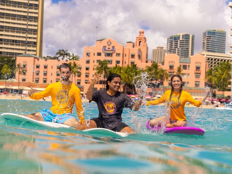 Learn to surf together in Waikīkī with a licensed Beachboy. Start with a land safety briefing, then head into the water for personalized coaching.