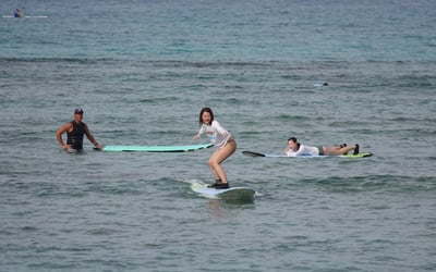 Learn to surf with a dedicated instructor during a private 2-hour lesson at Ala Moana in Honolulu. Reef shoes and a rash guard are included; bring sunscreen.