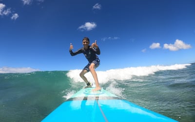 Enzo has built something special here with consistently glowing feedback from families and first-time surfers. His teaching style strikes that perfect balance of being professional and safety-conscious while keeping things relaxed and fun. People repeatedly mention how quickly he gets complete beginners up and riding waves, often within their first lesson. The uncrowded location he chooses makes nervous newbies feel more comfortable, and his knowledge of wave patterns and reef safety clearly puts parents at ease. What really sets this experience apart are the thoughtful extras. Enzo provides quality gear, captures GoPro footage from the surfboards at no additional charge, and often shares local recommendations for the rest of your trip. Reviewers appreciate supporting his small, locally-rooted business and mention his genuine passion for both surfing and ocean preservation. Whether you're bringing a 7-year-old for their first time or you're a 51-year-old looking to finally try it, the feedback suggests Enzo adapts his approach to each person's comfort level and goals.