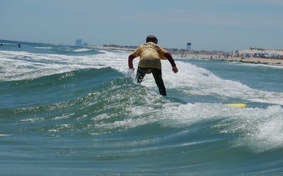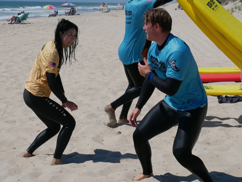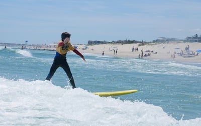 Ocean Street beach, Beach Haven. Arrive 15 minutes early at our shop (220 S Bay Ave, Beach Haven) for wetsuit fitting before the lesson.