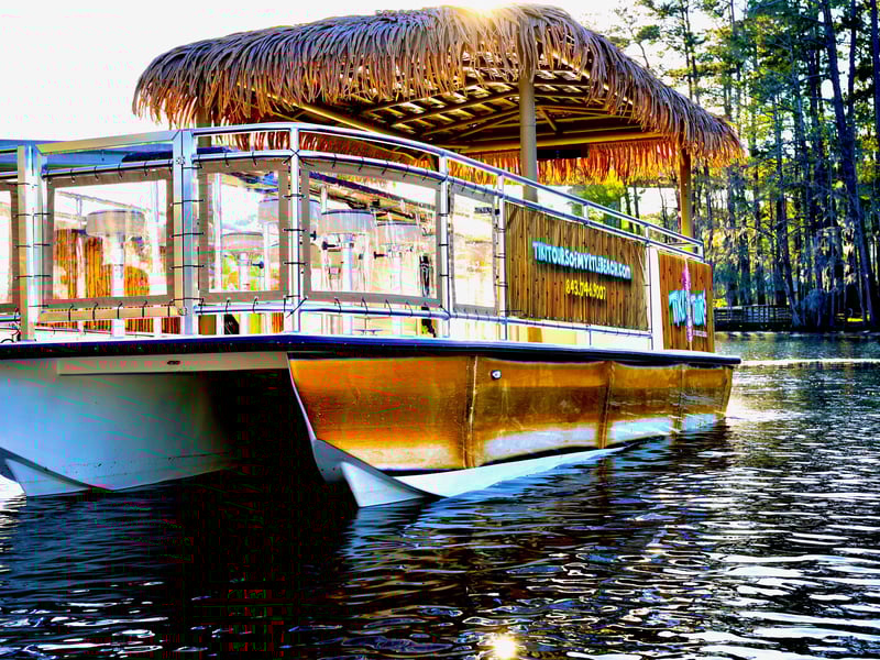 Step aboard an 18-passenger tiki boat for a private cruise along Myrtle Beach. Bring your favorite drinks and relax while a licensed captain handles the helm.
