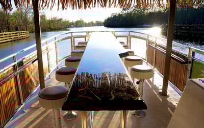 Celebrate with up to 18 friends on a BYOB tiki boat equipped with sound system and inflatables