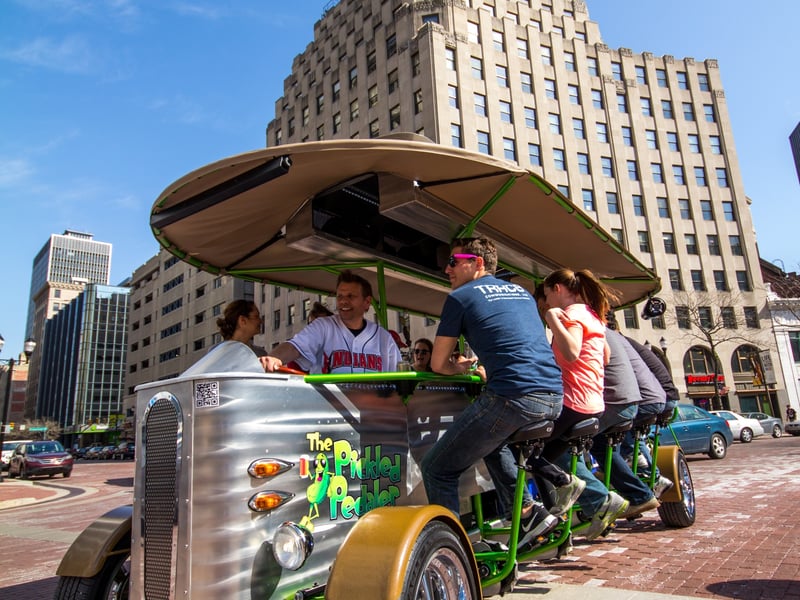 Rent the entire bike for your group on a BYOB pedal tour of downtown Indianapolis. Make 1–2 stops while your driver steers and shares suggestions.
