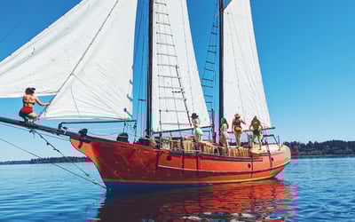 Set sail on South Puget Sound for a relaxed private two-hour cruise. Help hoist sails or unwind in bean bag chairs with a complimentary cocktail.
