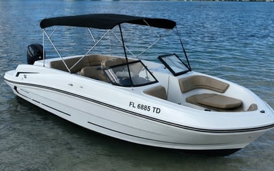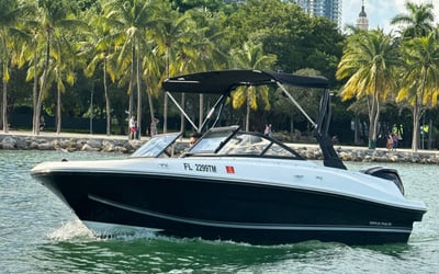 Explore Miami Bay on a private VR6 boat with a licensed captain. Take in skyline views, anchor to swim, and enjoy your own music as you cruise.