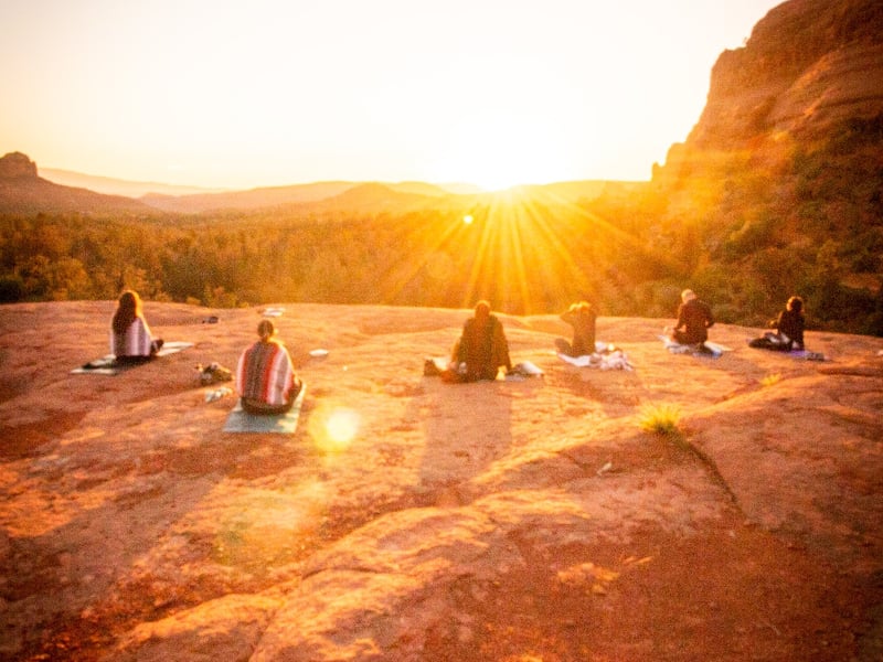 Experience a private sunrise or sunset yoga hike in Sedona's Red Rocks. Follow a gentle trail with an experienced guide to a scenic spot for restorative Hatha yoga and meditation.