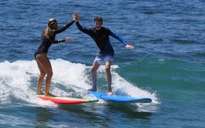 Learn to surf with a local pro in a 1.5-hour group session with gear included