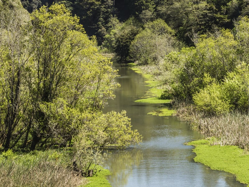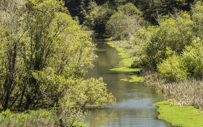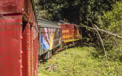 Ride a historic Skunk Train through redwoods and along the Pudding Creek Estuary on a quick family-friendly journey