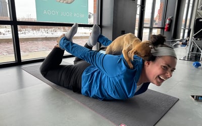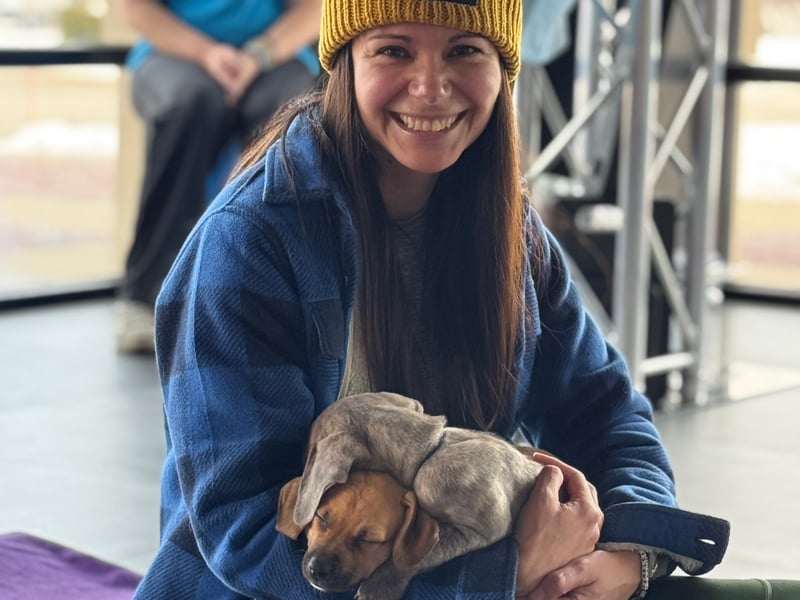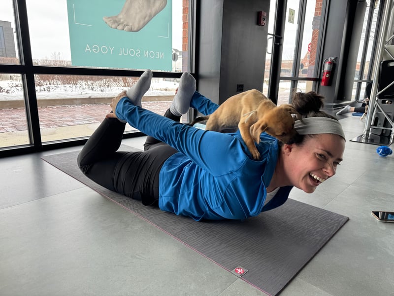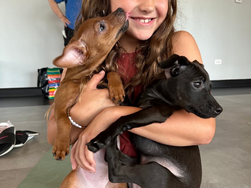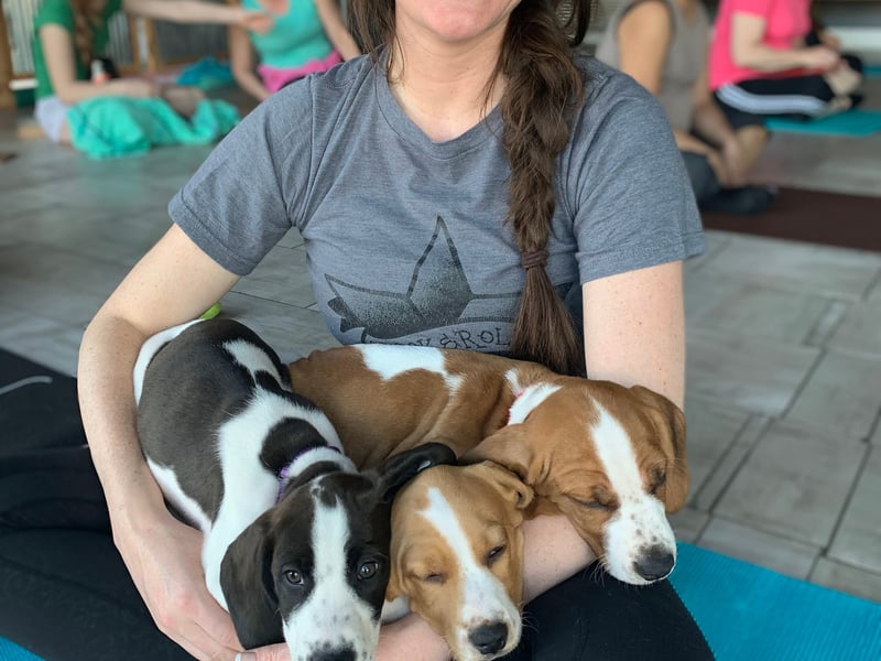 Flow through gentle poses and play with rescue puppies during a 1-hour indoor session.
