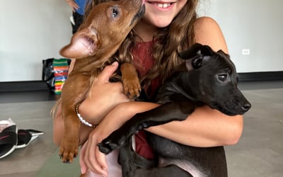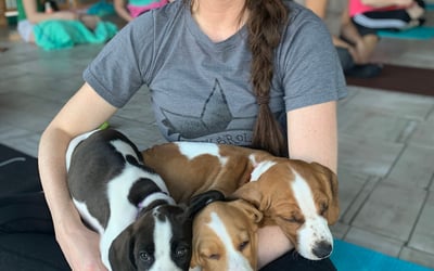 Practice guided yoga as rescue puppies roam and play. Enjoy a 1-hour indoor session with 30 minutes of yoga and 30 minutes of puppy playtime.