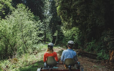 Pedal a two-seat railbike along the serene Pudding Creek Estuary into towering redwood groves. Enjoy a guided journey with a relaxing stop at historic Glen Blair Junction.