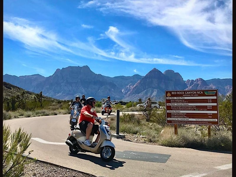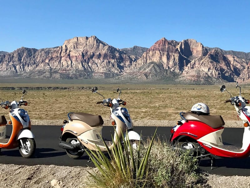 Red Rock Canyon on a scooter? Turns out this is the Vegas experience you didn't know you needed. Bubba, Clem, JT, and Steve consistently earn praise for being patient instructors who genuinely care about getting nervous riders comfortable before hitting the road. First-timers rave about how the guides spend a full hour on safety training and won't rush anyone into the tour until they're ready. That calm, encouraging approach transforms skeptical beginners into confident riders within minutes. The actual tour delivers stunning scenery with well-timed stops where guides share local history, move tarantulas off the road, and snap frame-worthy photos for you. Multiple reviewers mention this as their favorite Vegas activity, appreciating the chance to escape the Strip for a morning. One practical tip comes up repeatedly: dress warmer than you think. Even in summer, the mountain air gets chilly, so bring layers or long pants. The company has windbreakers to borrow, but you'll be more comfortable prepared. The combination of beautiful landscapes, easy-to-ride scooters, and guides who feel like instant friends makes this a standout choice for anyone visiting Las Vegas.