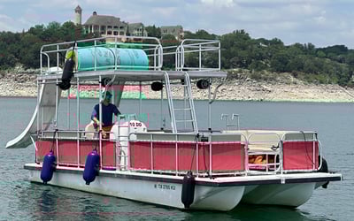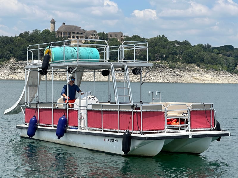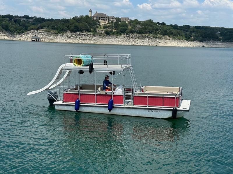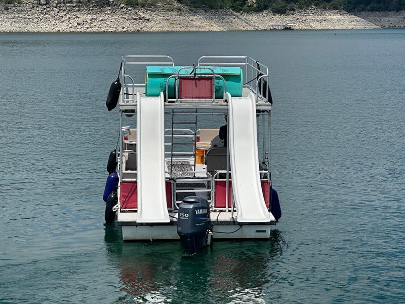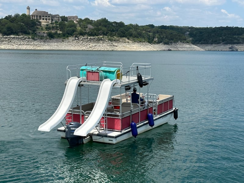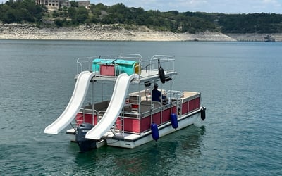 Take your event to the next level on Lake Travis aboard a double-decker party boat featuring two water slides and a captain. Enjoy onboard fun with a premium Bluetooth stereo, an Aqua Lily Pad, and fuel included.
