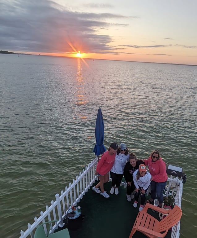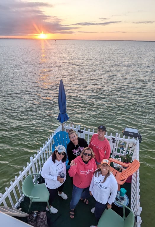 Enjoy a relaxing sunset cruise through Destin Harbor on a back-porch style pontoon