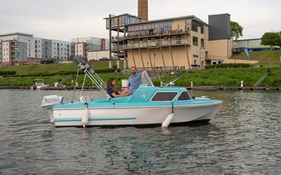 Glide along Richmond's James River in a rare retro electric boat, complete with classic fins and vibrant colors. Enjoy quiet, eco-friendly cruising while you take in city views with friends or family.