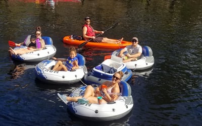 Float downstream on a comfy tube and ride a pontoon boat back for an effortless river experience.