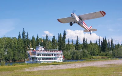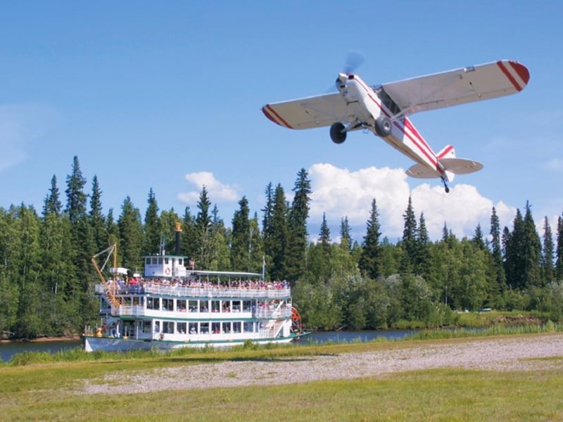 Meet sled dogs, watch a bush plane lift off, and stroll an Athabascan village while enjoying onboard comfort.