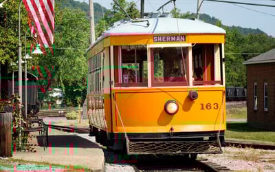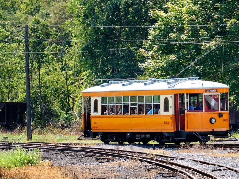 Ride a historic electric trolley along Blacklog Creek and explore the Rockhill Trolley Museum collection