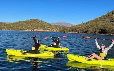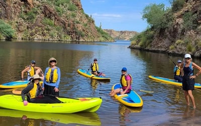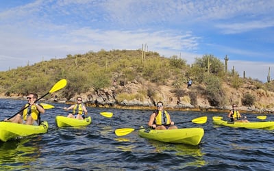 Explore Saguaro Lake on a guided paddle through desert scenery and canyon walls. Learn technique and regional insights as you kayak or paddleboard.