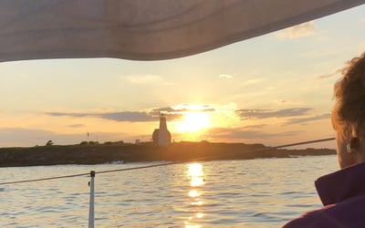Sail Saco Bay to a restored island lighthouse with a guided tower tour