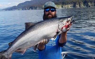 Set off from Homer aboard the 30-ft Longshot and target up to five Pacific salmon species alongside seasoned Captain Ben. Enjoy a heated cabin, marine toilet and fast cruising speeds for an efficient full-day charter.