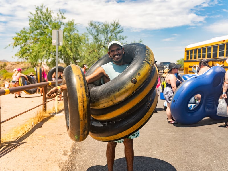 Tubes are not allowed in the parking lot or to be transported in personal vehicles. All tubes must be transported by Salt River Tubing’s vehicles.