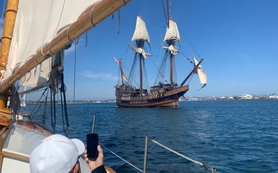 Captain Phil has clearly created something special with his replica 1905 wooden sloop. Reviewers consistently praise his welcoming personality, impressive craftsmanship, and deep knowledge of San Diego Harbor's history and landmarks. The boat itself gets nearly as much attention as the captain, with guests admiring the beautiful vessel he personally renovated. What stands out most is the intimate, personal atmosphere he creates as a privately-owned operation, often accommodating small groups that allow for a relaxed, conversational experience rather than a crowded tour. The sunset cruises seem to be the popular choice, and guests love the complimentary beverages and snacks Phil provides. Multiple locals mention this is the best harbor experience they've had despite trying other options. Families appreciate that kids can explore the boat, and there's often wildlife like dolphins and sea lions to spot. If you're looking for a more sophisticated, intimate sailing experience over a large party boat atmosphere, this comes highly recommended by everyone who's sailed with Captain Phil.