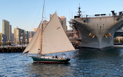 Savor a San Diego Bay sunset with drinks on an intimate six-passenger sail aboard a classic yacht