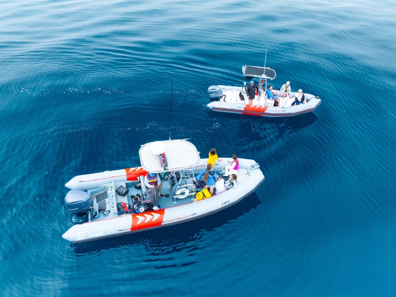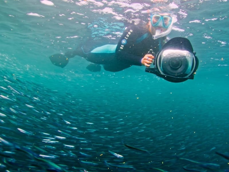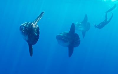 Swim offshore to encounter sunfish, bait balls, and seasonal whales on a 6-hour guided ocean adventure.