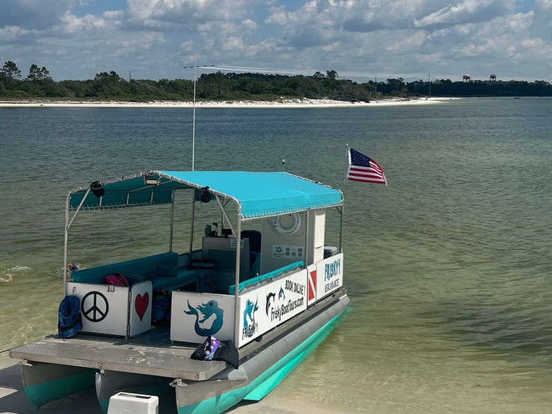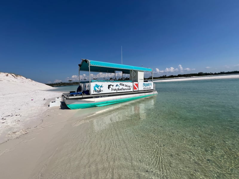 Set out on a 3-hour guided dolphin tour with a beach stop around Pensacola Beach, weather permitting. Choose a semi-private or private trip for up to six passengers on a covered boat with a restroom onboard.