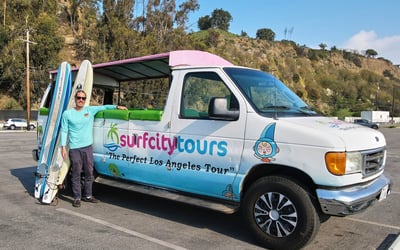 Ride along the Pacific Coast Highway in open-air surf vans and spend the day catching waves at renowned Southern California breaks. Local guides provide gear, tips, and a picnic lunch so you can focus on the surf.
