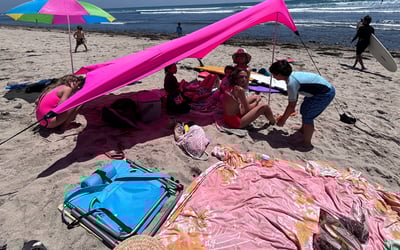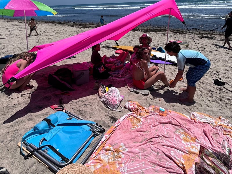 Surfboard and wetsuit, Picnic lunch